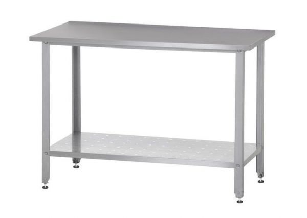 Стол производственный 1000*600*860 мм, столешница из нержавеющей стали 0.5мм, усиление столешницы - подложка ДСП 16мм, полка сплошная перфорированная из оцинкованной стали 0.8мм, каркас разборный из оцинкованной стали - гнутый угловой профиль 1.5мм, регулируемые по высоте опоры и стальные подпятники. Стол производственный разделочный из нержавеющей стали для кухни кафе, столовой, ресторана, общепита, пищевых производств и торговли. Стол кухонный нержавеющий предназначен для использования в качестве вспомогательного нейтрального оборудования пищеблока для выполнения работ связанных с разделкой, приготовлением и сортировкой пищевых продуктов; для складирования и хранения кухонного инвентаря. Стол производственный разделочный из нержавейки можно также использовать для установки различного механического, весового и иного технологического оборудования столовых, кафе, ресторанов и баров. Стол рабочий разделочный из нержавейки имеет очень прочную конструкцию, выдерживает большие нагрузки и имеет долгий срок службы. Нейтральное оборудование из нержавеющей стали для общепита,пищевых производств и торговли. Производство кухонного нейтрального оборудования из нержавеющей стали, производство мебели на металлокаркасе для общепита на производственном комплексе производителя ПКФ ТоргСервисСнаб в Екатеринбурге. www.torg-snab.com. Оборудование для столовой,кафе и ресторана. Профессиональное оборудование для общепита, пищевых производств и торговли. Мебель для предприятий общественного питания. Промышленное холодильное оборудование для магазинов, складов и кухонь. Комплексное оснащение оборудованием и мебелью. Поставка,продажа профессионального оборудования для общепита и торговли купить оборудование с наших региональных складов в городе Екатеринбург, Москва, Санкт-Петербург, Краснодар, Ростов-на-Дону, Симферополь, Ставрополь, Тимашевск, Пятигорск, Нижний Новгород, Чебоксары, Самара, Ярославль, Йошкар-Ола, Волжск, Уфа, Челябинск, Пермь, Тюмень, Омск, Новосибирск, Хабаровск, Владивосток или доставляем транспортными компаниями по всей территории России. ТОРГСЕРВИССНАБ. www.torg-snab.com